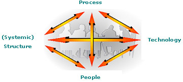 The Process Works specialises in "end to end" support for professionals in boundary roles - this is simply people who are vested with the responsibility for renewal, transformation, business improvement or new behaviours in the delivery of products and services. Clearly boundary roles require close interaction between the following business domains: